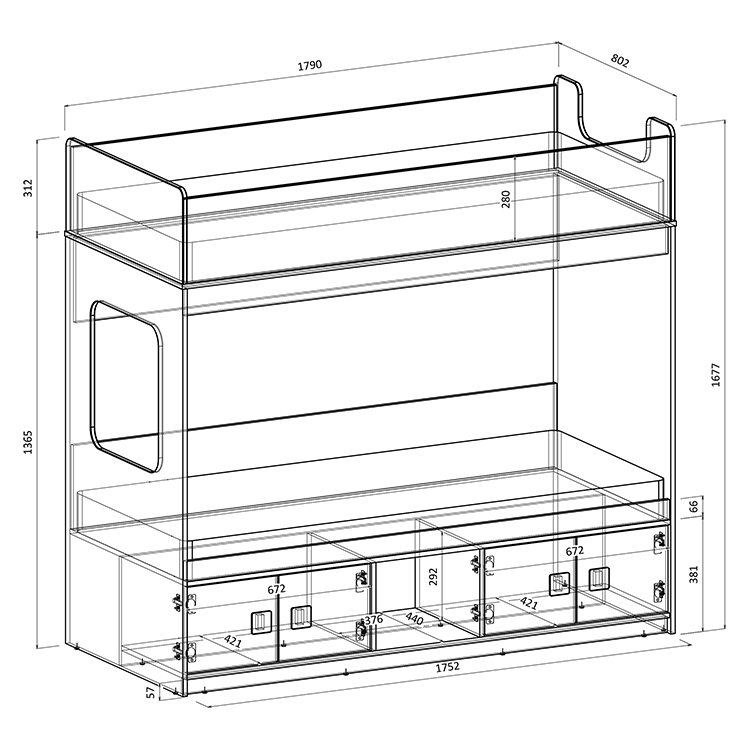 Под нижним ярусом раполагаются закрытые места хранения, оборудованные дверкаии. Ваш ребенок с удовольствием будет хранить там свои любимые игрушки.